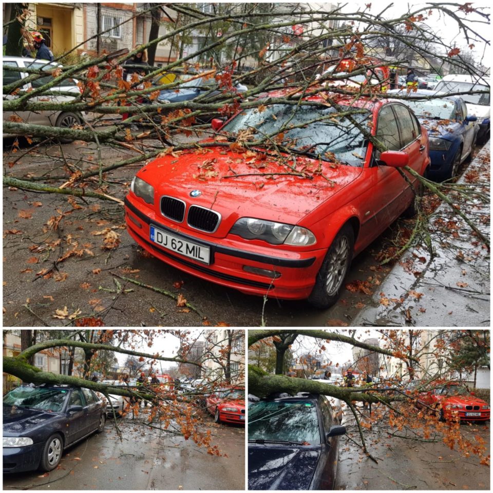 O ploaie torențială de doar 20 de minute a făcut prăpăd în această dimineață, la Timișoara. Cinci copaci s-au prăbușit peste mașini, iar în județ o casă a luat foc.